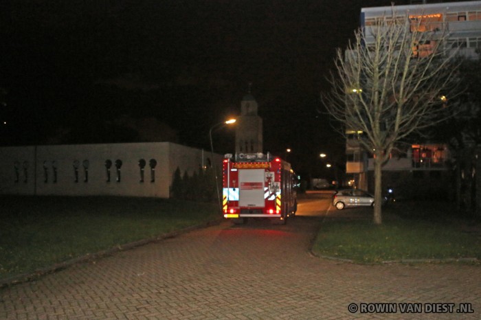 Bij aankomst bleek er echter een stapel afval tegen een flat aan in de brand te zijn gestoken. De brandweer wist het vuur snel te blussen, maar kon niet voorkomen dat de flat flinke schade opliep.