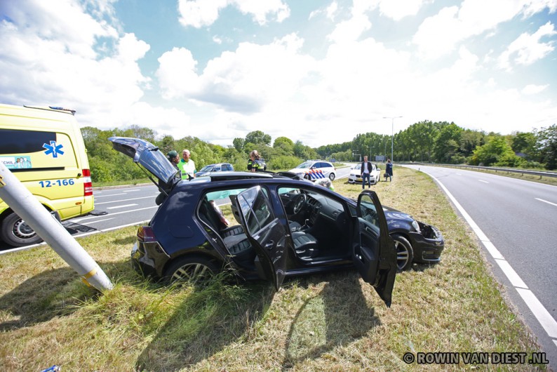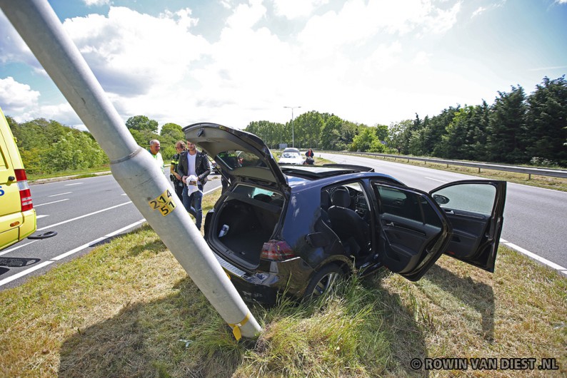 Ambulance en politie kwamen ter plaatse om hulp te verlenen. Ambulancebroeders hebben alle drie de inzittenden nagekeken. Wonder boven wonder kwamen zij er zonder verwondingen vanaf. De drie kunnen van geluk spreken dat zij niet frontaal tegen de stevige verkeerspaal aanreden, of dat op het moment dat zij van de weg raakte er auto’s in tegengestelde richting reden.
