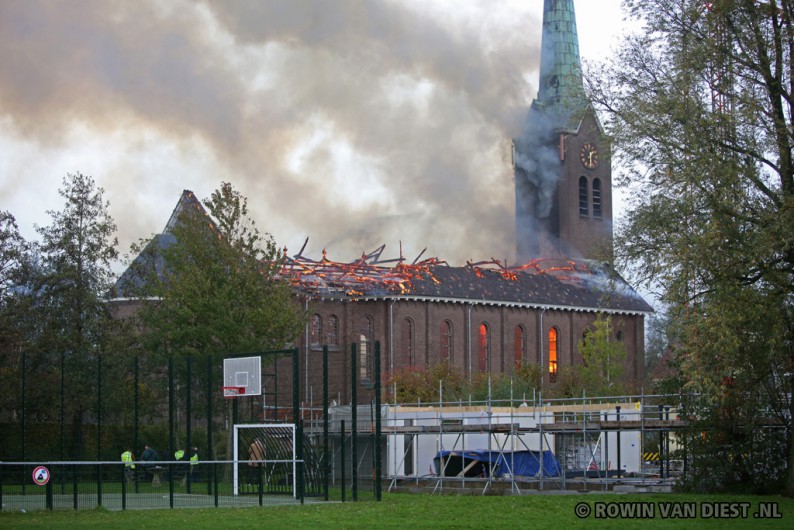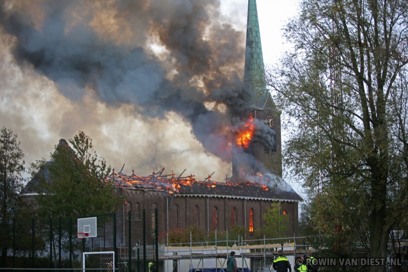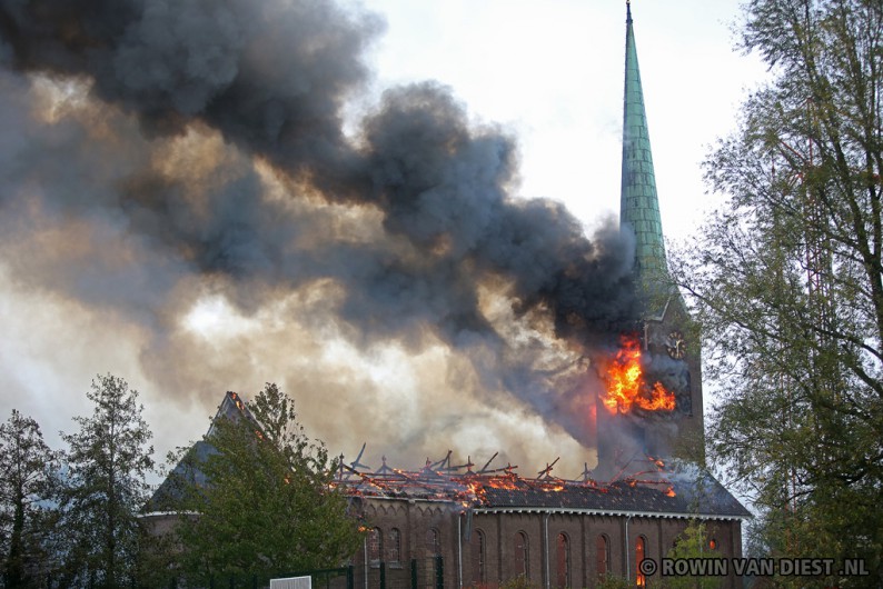 Hoogmade – De Onze-Lieve-Vrouw-Geboortekerk in Hoogmade is maandagmiddag door een heftige brand verwoest. Aan het begin van de middag ontstond het vuur bij werkzaamheden waar verf werd weggebrand. De brand ontwikkelde zich al snel en niet veel later stond de gehele kerk in de brand.